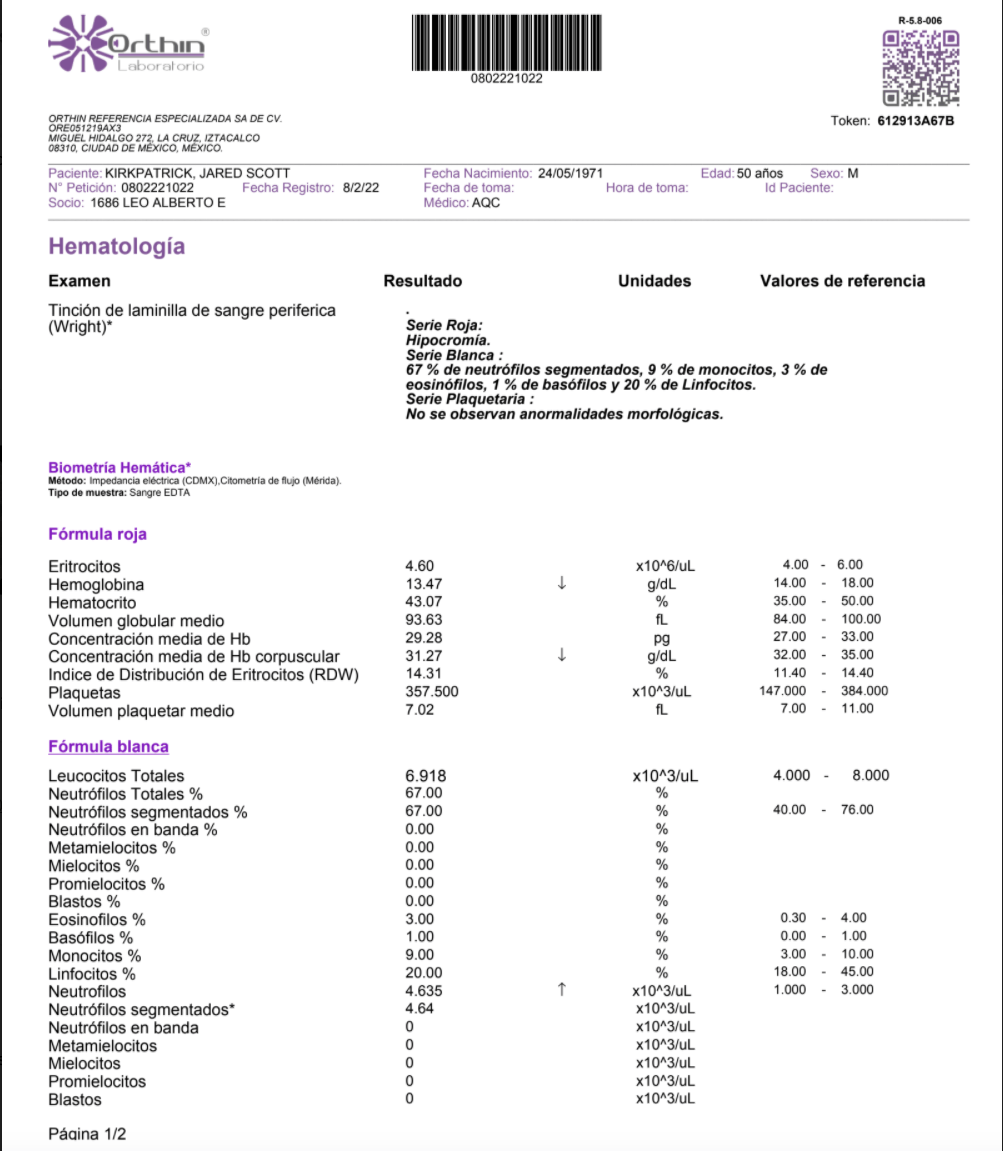 Blood Work Analysis on 1 Person, Before & After 2 Days of Taking Panther Stem