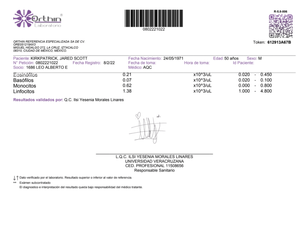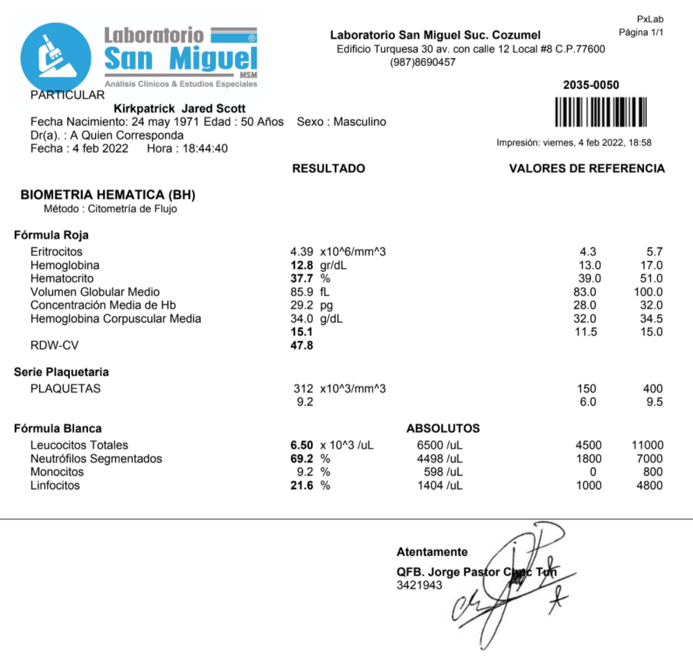 BLOOD WORK ANALYSIS